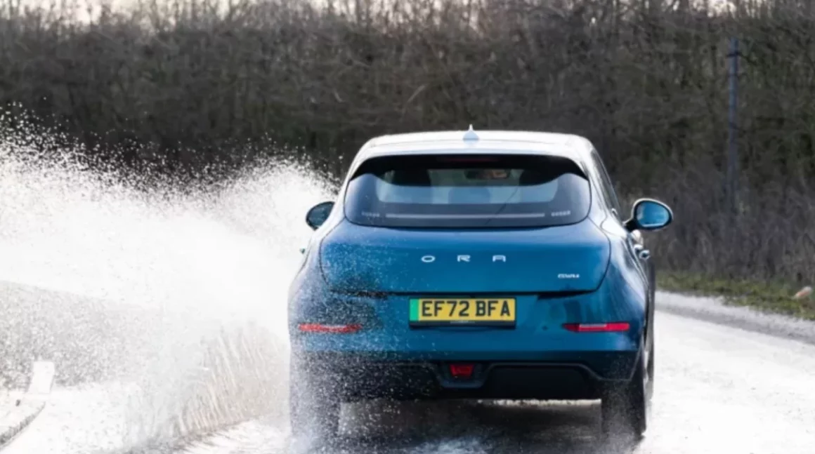 Pelo contrário, os elétricos podem até ter vantagens no enfrentamento de chuvas fortes e até enchentes, por exemplo. Isso porque os conectores e a bateria ficam em invólucros selados, projetados para que não haja contato com a água. Assim, é mais difícil que a água entre em algum componentes. Além disso, ao atravessar uma área alagada, o elétrico tem, na teoria, menos dificuldades por não ter escapamento. Desse modo, também não há o problema do calço hidráulico. E como são mais pesados por conta das baterias no assoalho do carro, o risco de flutuação nos trechos com muita água também é menor.