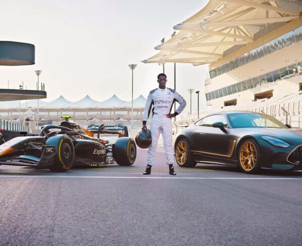 O AMG GT 63 4MATIC+ “APXGP Edition” homenageia a equipe imaginária APXGP com uma pintura exclusiva feita à mão, realçada por detalhes dourados na grade, asas, saias, para-choques e difusor. As rodas AMG de 21” são forjadas e pintadas de dourado fosco, enquanto os discos de freio, de carbono cerâmica preta, completam o visual esportivo.