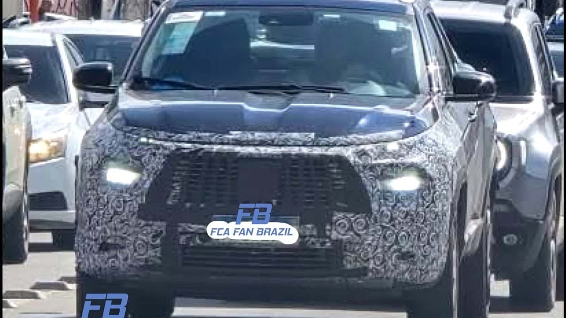 Rodando com leve roupagem zebrada na dianteira, a picape já começa a revelar quais partes não devem mudar. Assim como no Cronos e no Pulse, a Toro adotará LEDs diurnos em pixel e grade dianteira ao estilo Maserati, com filetes verticais, além de elementos quadrados na parte inferior do para-choque, que seguem muito do padrão visto no Grande Panda europeu.