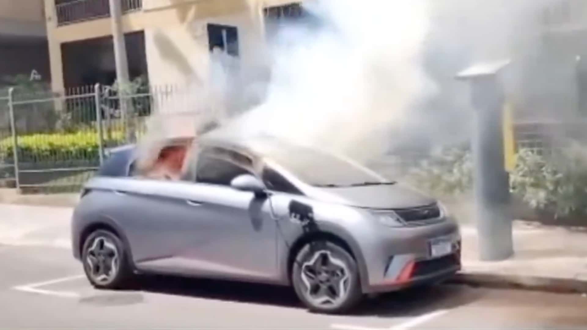 Um incêndio em um BYD Dolphin chamou atenção no últo domingo (19/10), em Santa Maria (RS). O carro estava estacionado na Rua Dr. Bozano quando as chamas começaram. Moradores relataram que o proprietário improvisou uma forma de recarga usando uma extensão elétrica que vinha do segundo andar e, para evitar furtos, deixava o carregador portátil dentro do carro, com as janelas entreabertas.