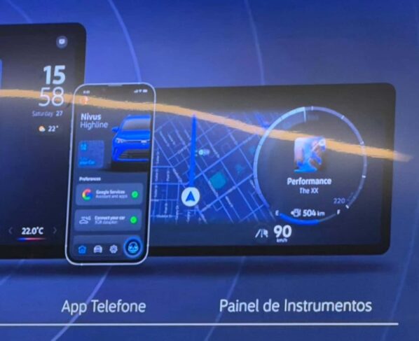 Um dos modelos que pode chegar primeiro é a nova geração do Nivus, podendo aparecer em 2028. Durante outra apresentação à imprensa, a Volkswagen voltou a falar do futuro, mas contemplando as novas interfaces de usuário por meio de telas, como a da multimídia e a do painel de instrumentos. Então seria esse o futuro painel dos carros eletrificados da marca? Fica a dúvida.